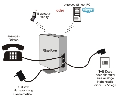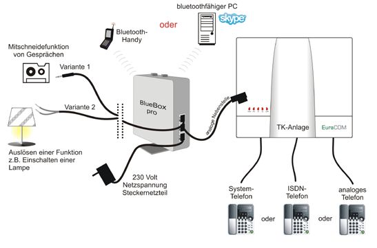 Statt des Telefonapparates ist auch der analoge Amtseingang einer Telefonanlage möglich (auch bei Fritzbox Fon)